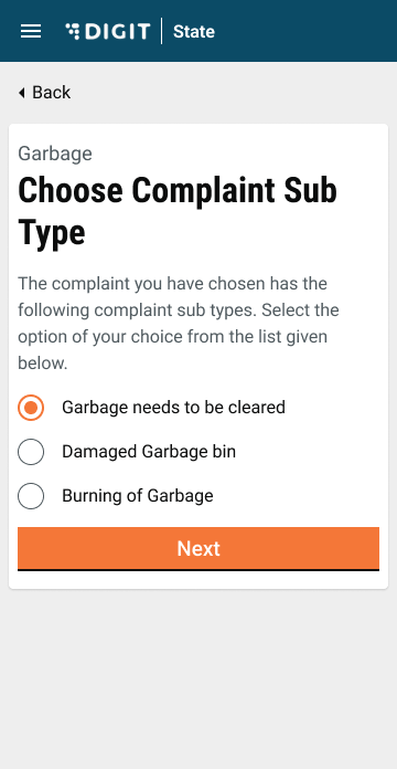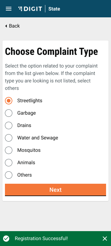 The File A Complaint option allows citizens to register their complaints.