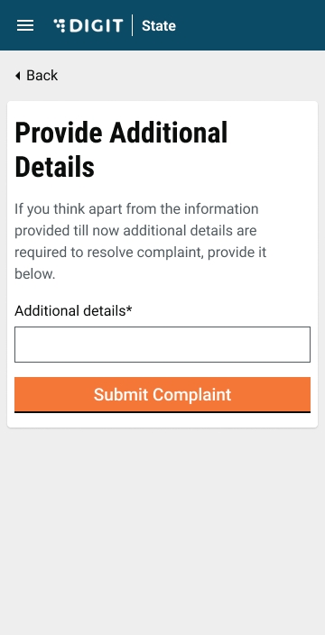 Enter the Pincode to indicate the location of the complaint. Click on Skip and Continue to proceed in case you do not have the PIN details.
