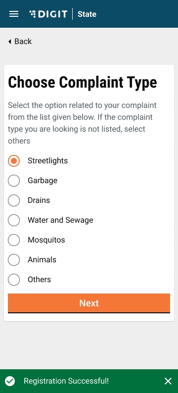 The File A Complaint option allows citizens to register their complaints.