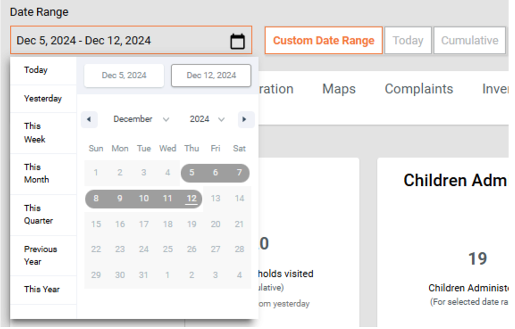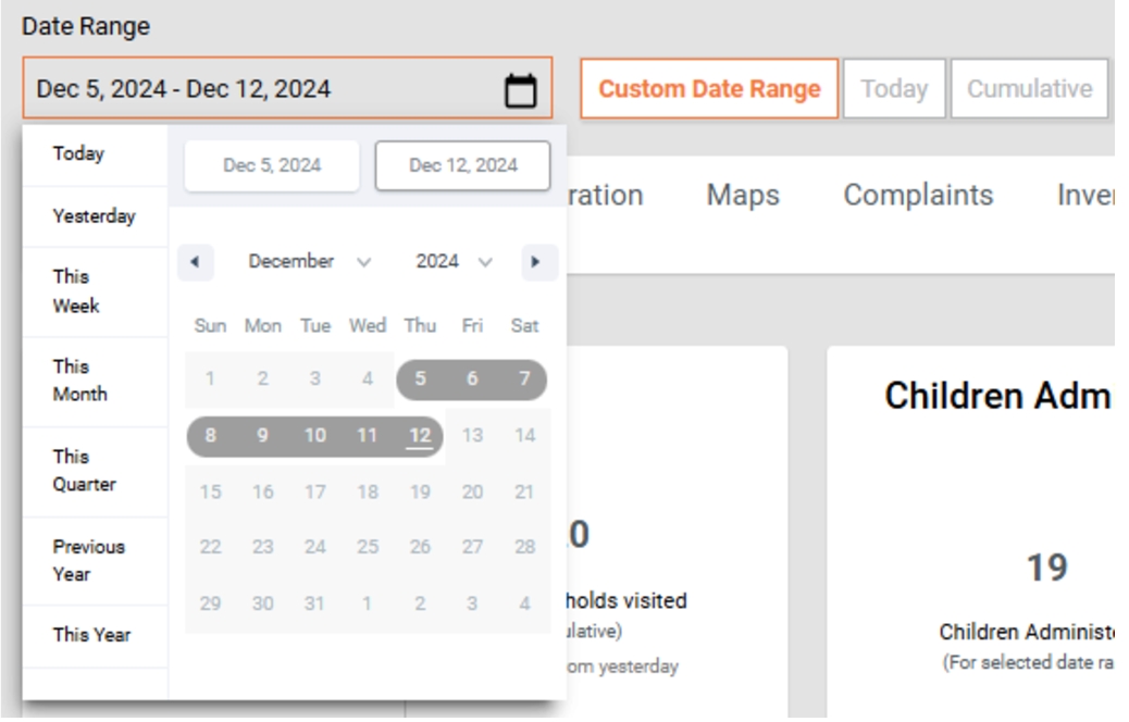 Use the Filter by Cycle option to view data for a specific treatment cycle in the Seasonal Malaria Chemoprevention (SMC) campaign.