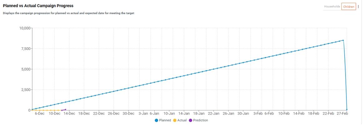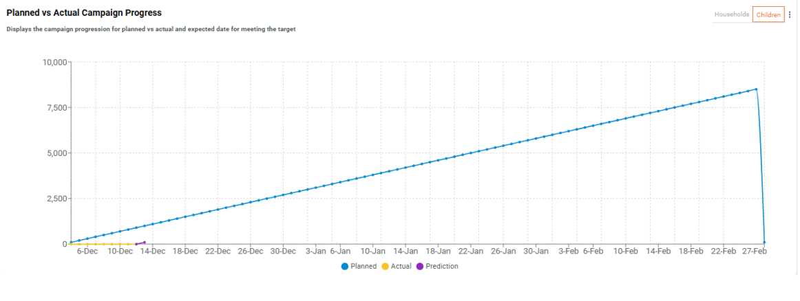 The Prediction Line Chart estimates the number of additional days required to reach the target coverage.