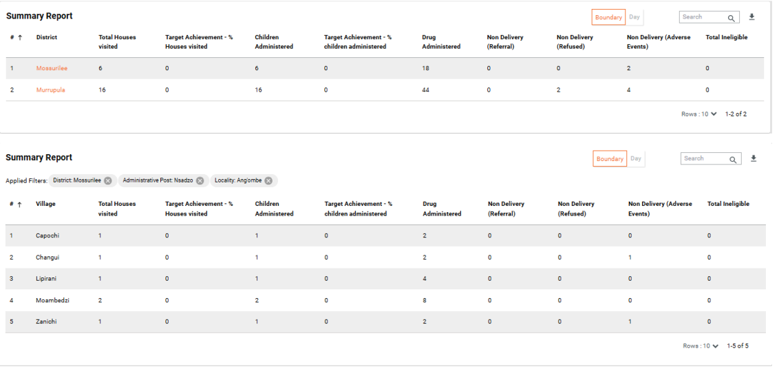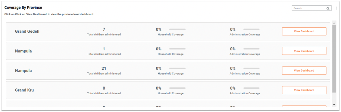 To navigate to a sub-national level dashboard, click on the View Dashboard button next to the sub-national boundary name.