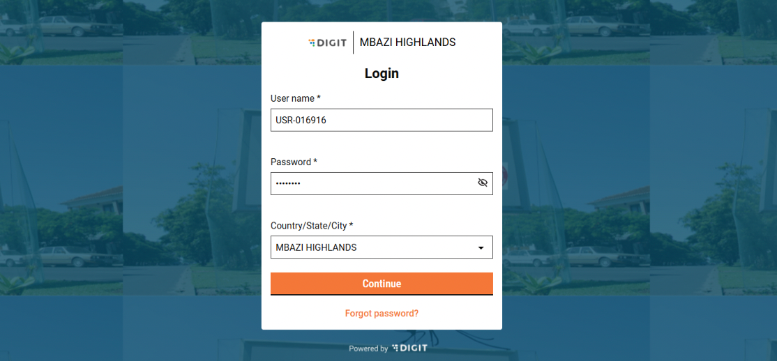 Enter your credentials on the Login page and click Continue to access the dashboard.