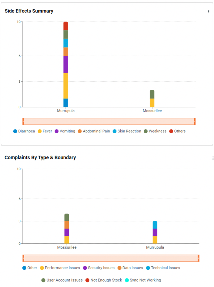 Show types of side effects recorded during a campaign, with categories stacked vertically for each boundary.