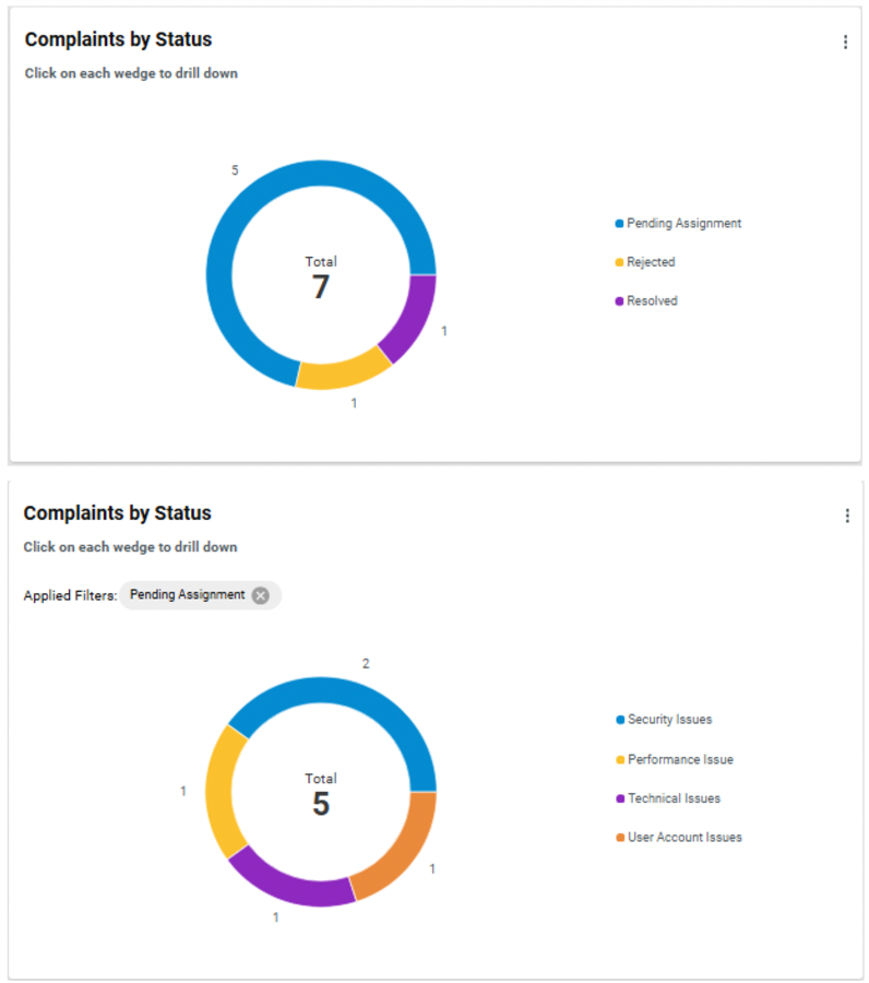 Click on any slice in the pie chart to drill down into sub-categories or data split across sub-boundaries.