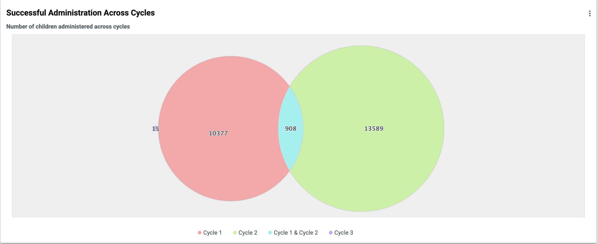 Purpose: The Venn diagram visually represents the overlap and distribution of children treated across different campaign cycles.