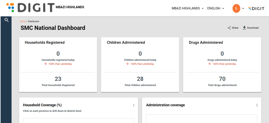 Click on the Dashboard. If you are logged in as a National Supervisor, the landing page shows the national overview page.