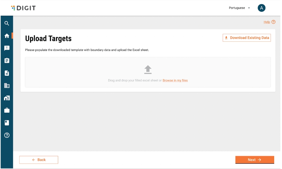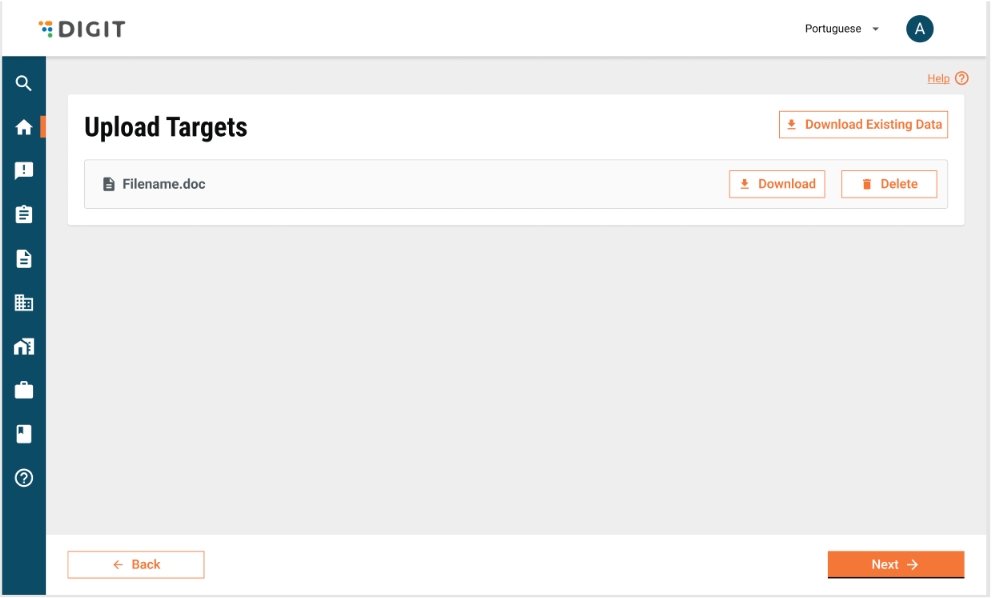 On the Update Target Data Screen, click on the Download Existing Data button to download the last successfully uploaded file used for creating the Target Data. Open the downloaded file and review the existing Target data.