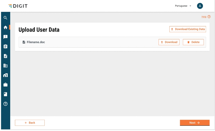 On the Update App User Data Screen, click on the Download Existing Data button to download the last successfully uploaded file used for creating the App User Data. Open the downloaded file and review the existing App User data.