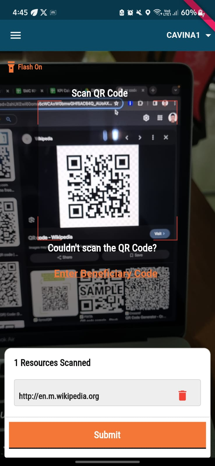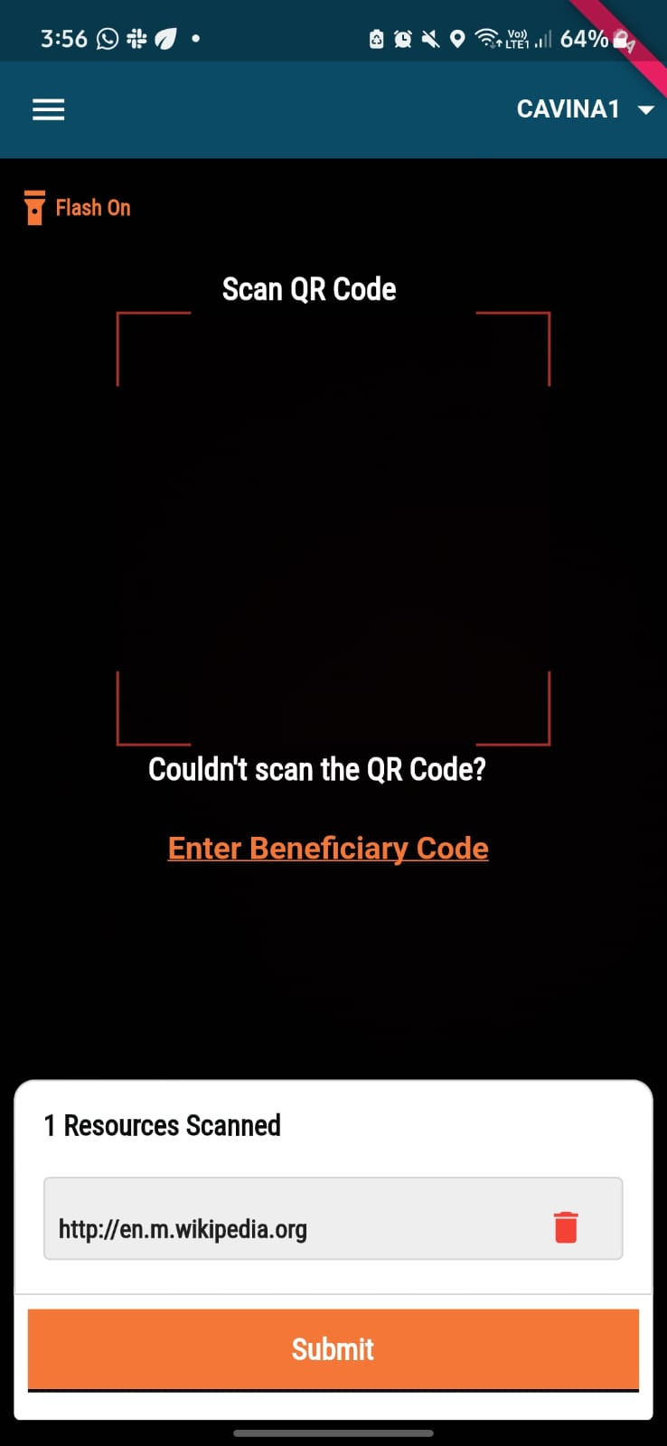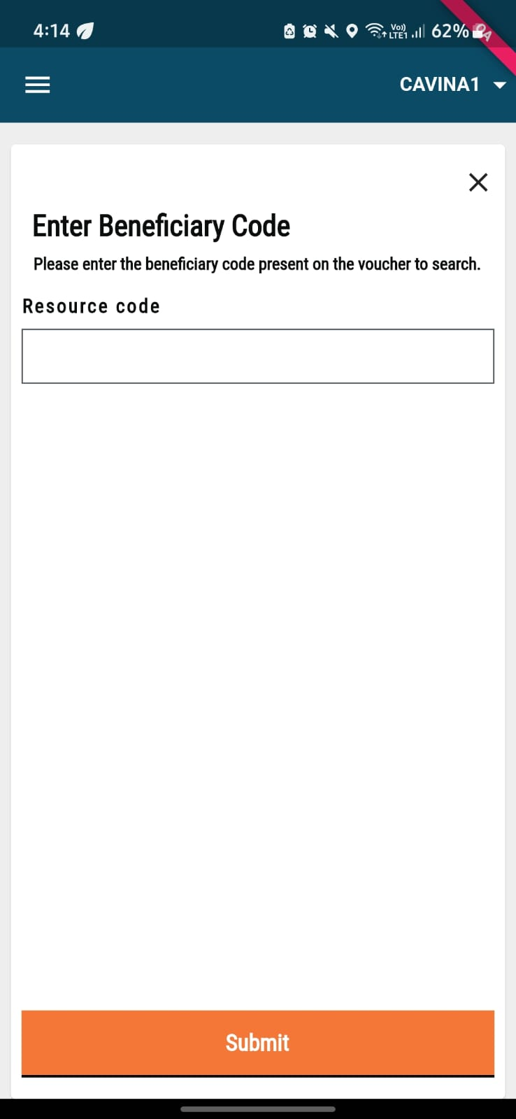 Use the QR Code scanner to scan the voucher shown by the beneficiary and click on Submit.