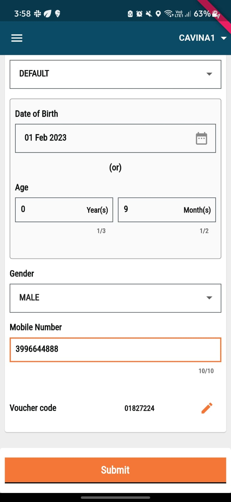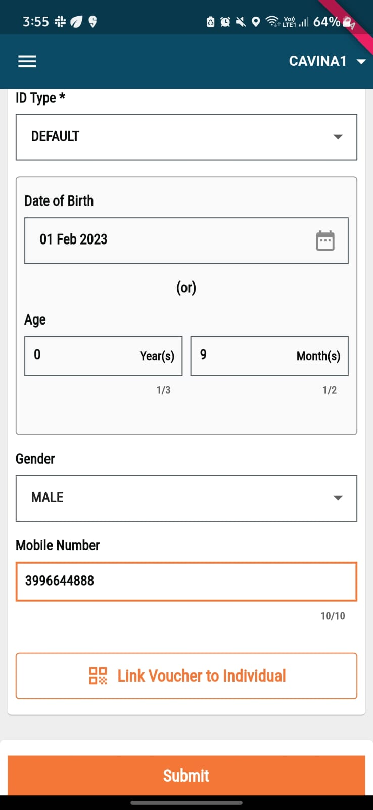 Click on Submit after adding the correct voucher code for the beneficiary to link the Voucher to the Beneficiary in the database.