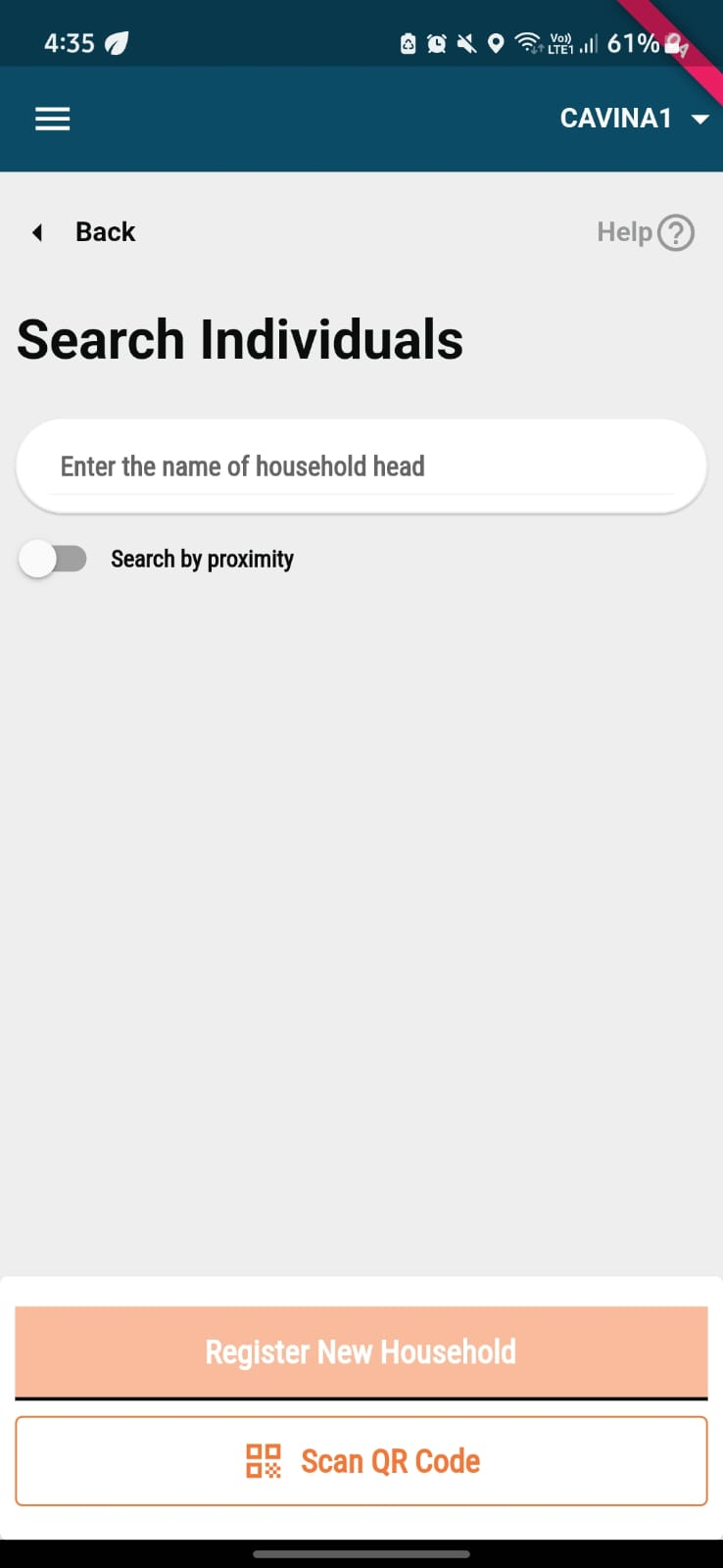 The user goes from house-to-house, and searches for beneficiaries by scanning the QR code voucher.