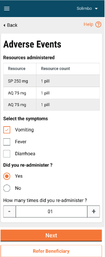 While administering the dose to a beneficiary (usually children), there can be instances when the beneficiary shows some symptoms against the dose provided. These adverse events need to be recorded and monitored as they help to take precautionary measures for further doses as well as in future campaigns for that beneficiary. It is helpful for cases when a beneficiary's situation becomes critical and he/she need to be referred to a healthcare facility. This is also crucial for resource tracking because, in certain campaigns, the beneficiary can be re-administered the dose even after they vomit out the medicine.