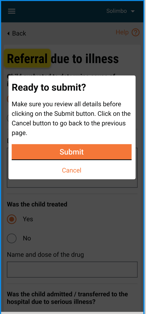 Once all the questions in one of these flows are answered, a pop-up frame asking for confirmation will be shown for submission as given below:
