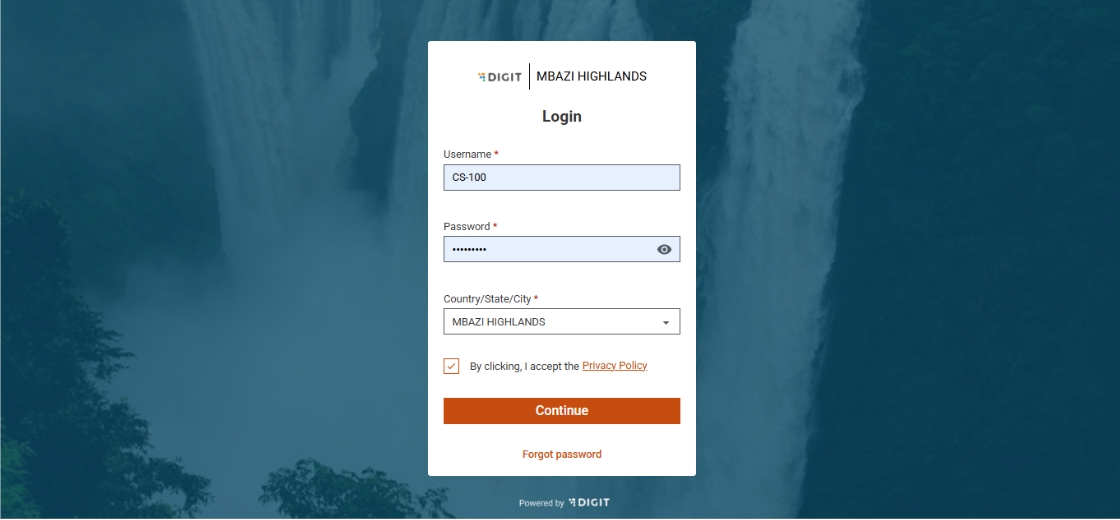 Next is the login page, where the credentials for a campaign supervisor are entered and the assigned boundary is selected. After reading through the privacy policy statement, select the checkbox to indicate acceptance. Then click on ‘Continue’ to proceed.