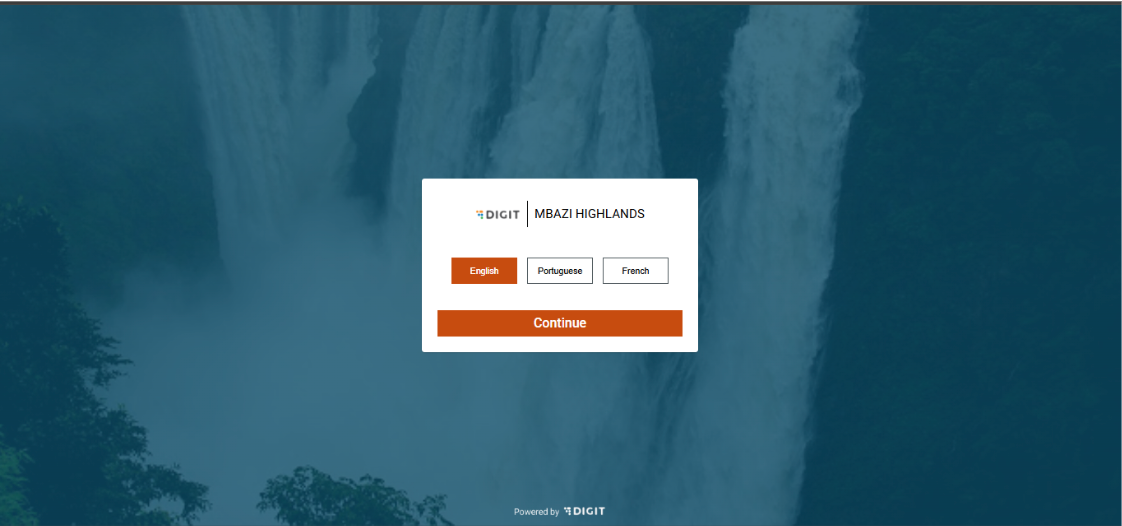 On the language selection screen, select the preferred language from the available options. Select the desired language and click on ‘Continue’ to access the login page.