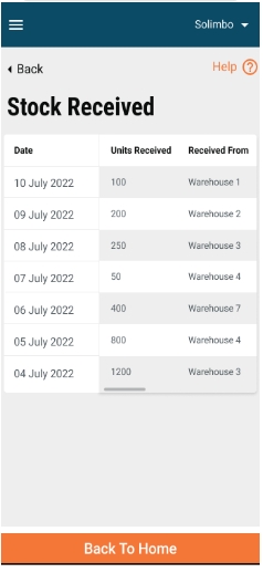 Click on the arrow button placed next to every transaction to open the respective report. The back button will navigate users back to the home screen.