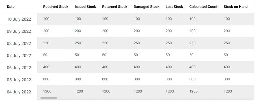 Click on the Stock Reconciliation button to fetch the details. The report is in tabular format.
