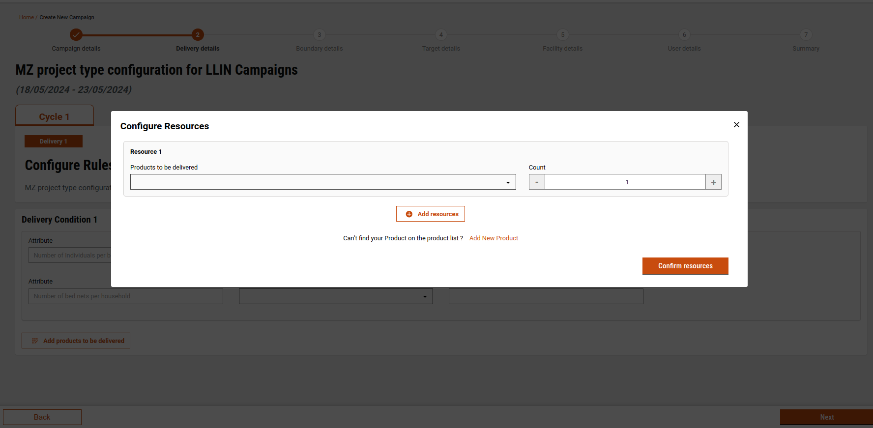 Click Confirm Resources to add them to the delivery rule.