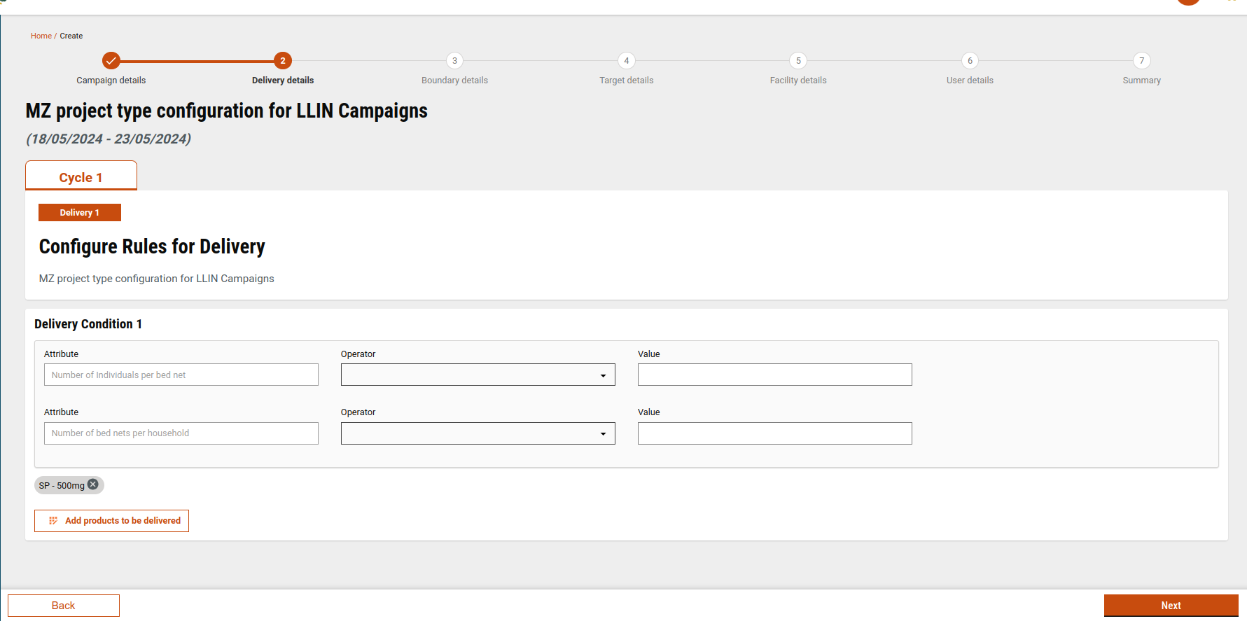 Default values for cycles and deliveries are fetched from MDMS, based on the selected project type. Click here to access the config file.