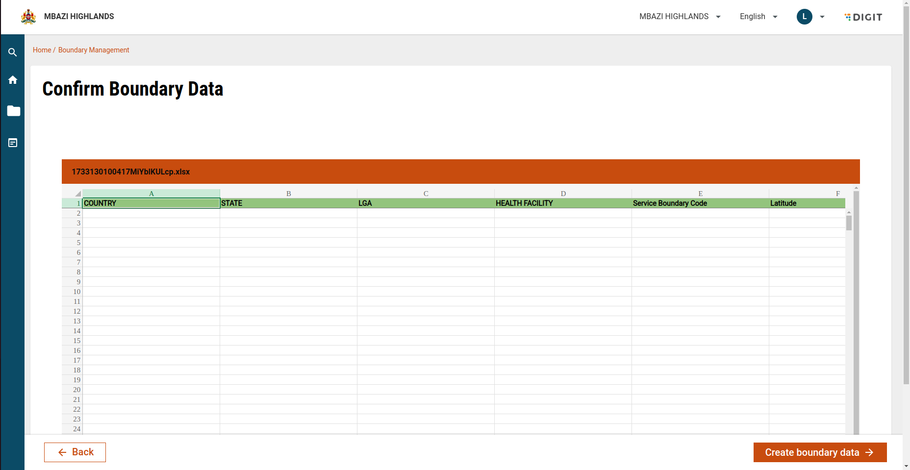 On submission, the system triggers the data creation process and stores the uploaded boundaries.