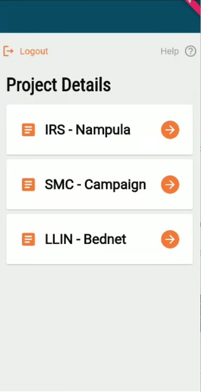 Project Screen: Displays a list of projects assigned to the user. The user selects the project from the list to view.