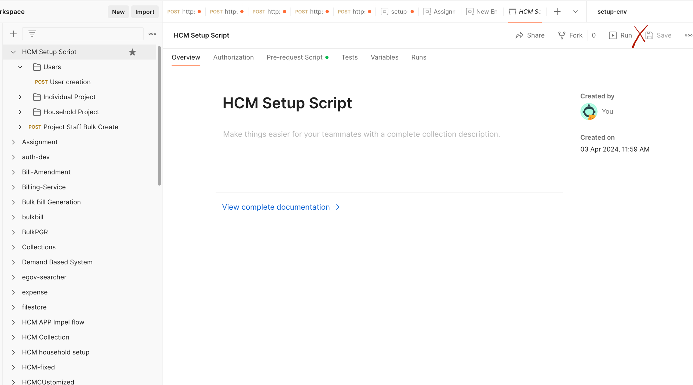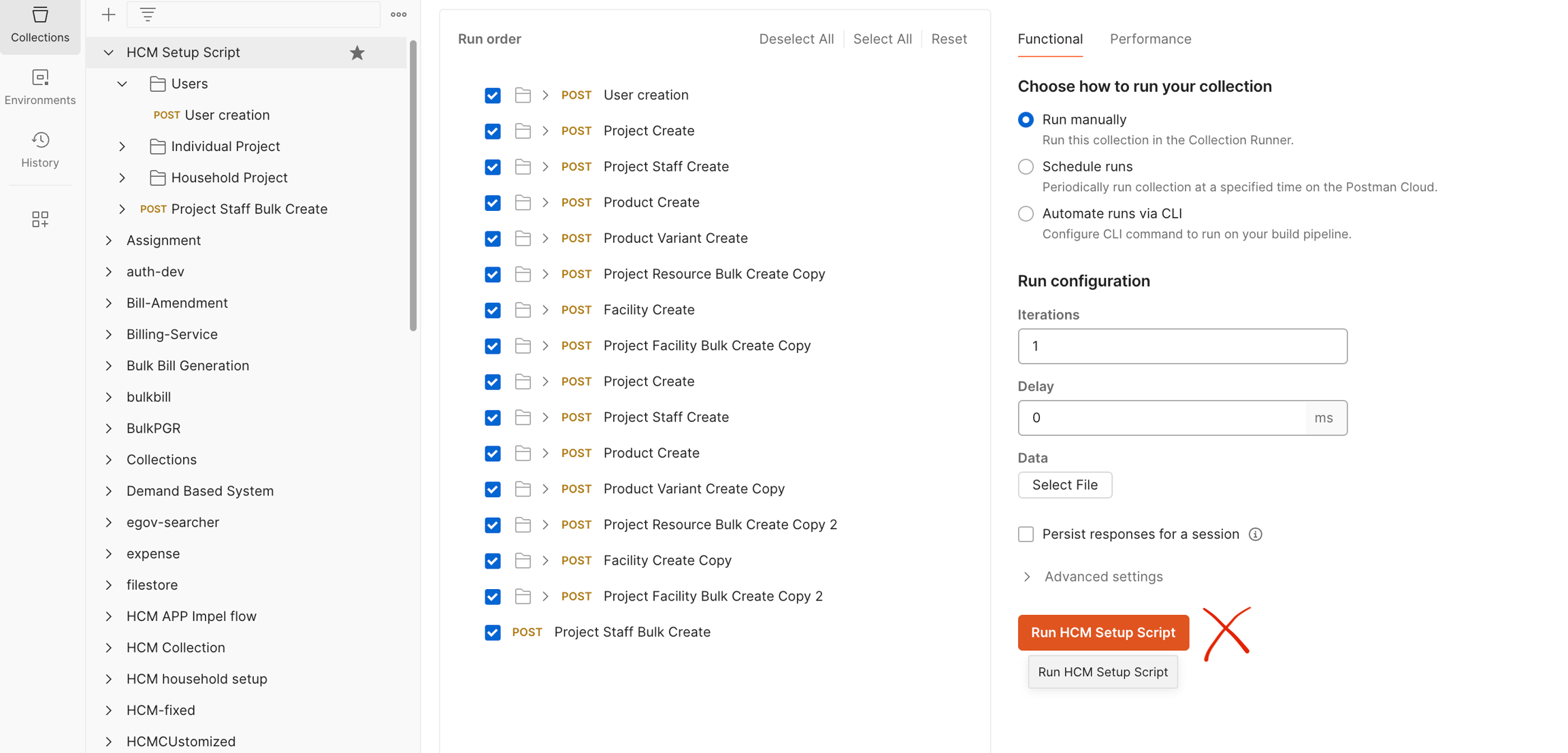 Import the HCM setup script in Postman - import guide