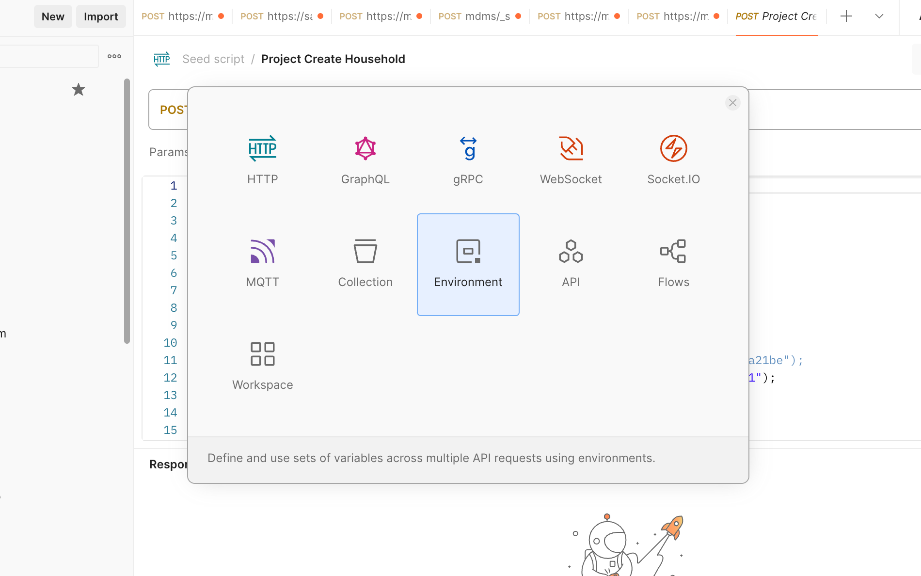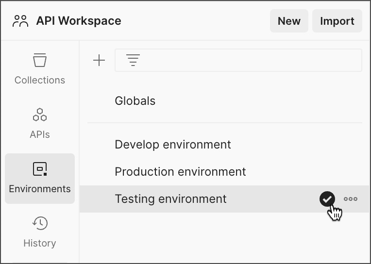 Choose the new environment created in the environment tab.