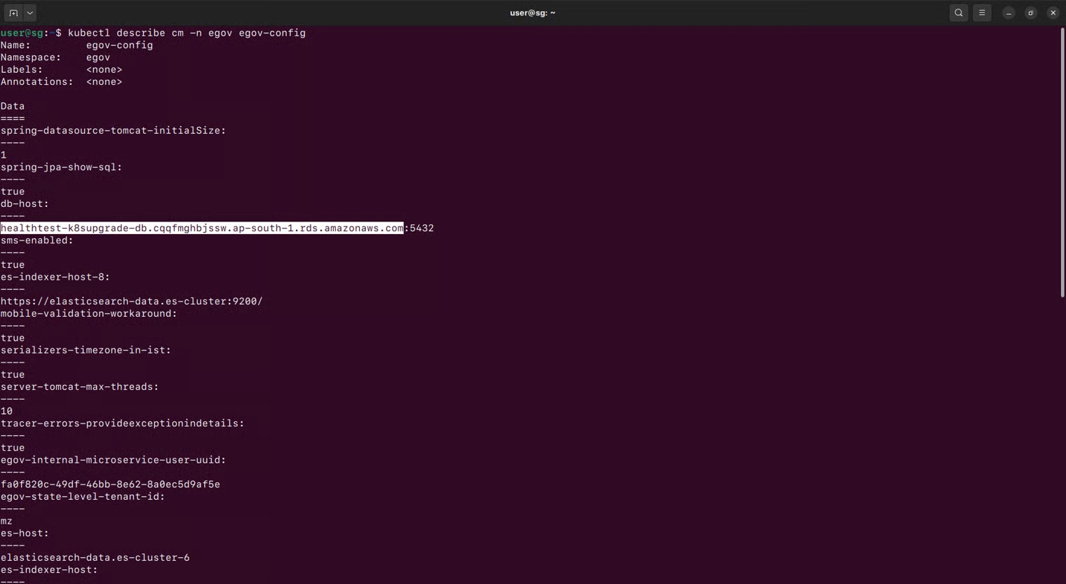 kubectl describe cm -n egov egov-config