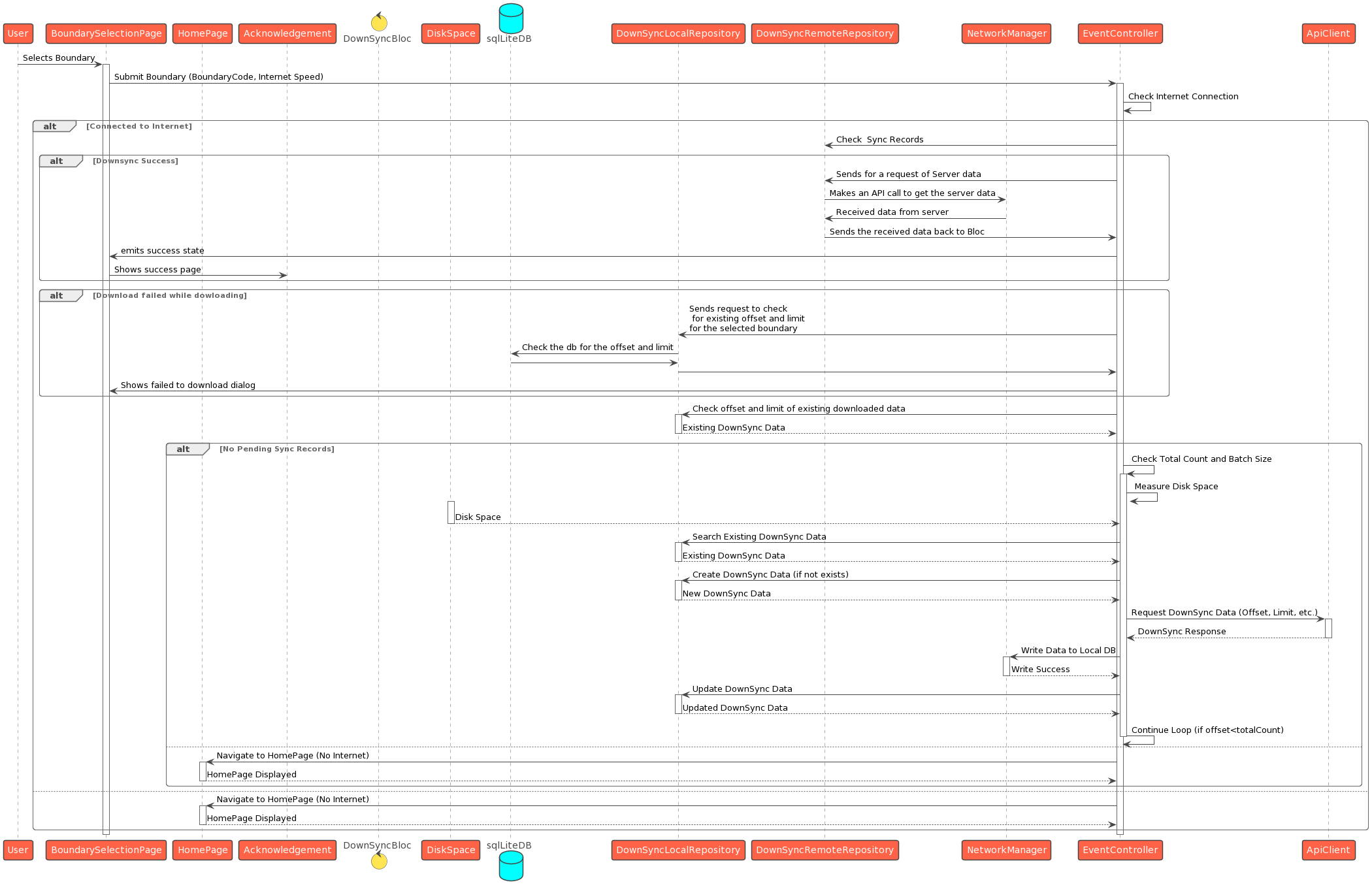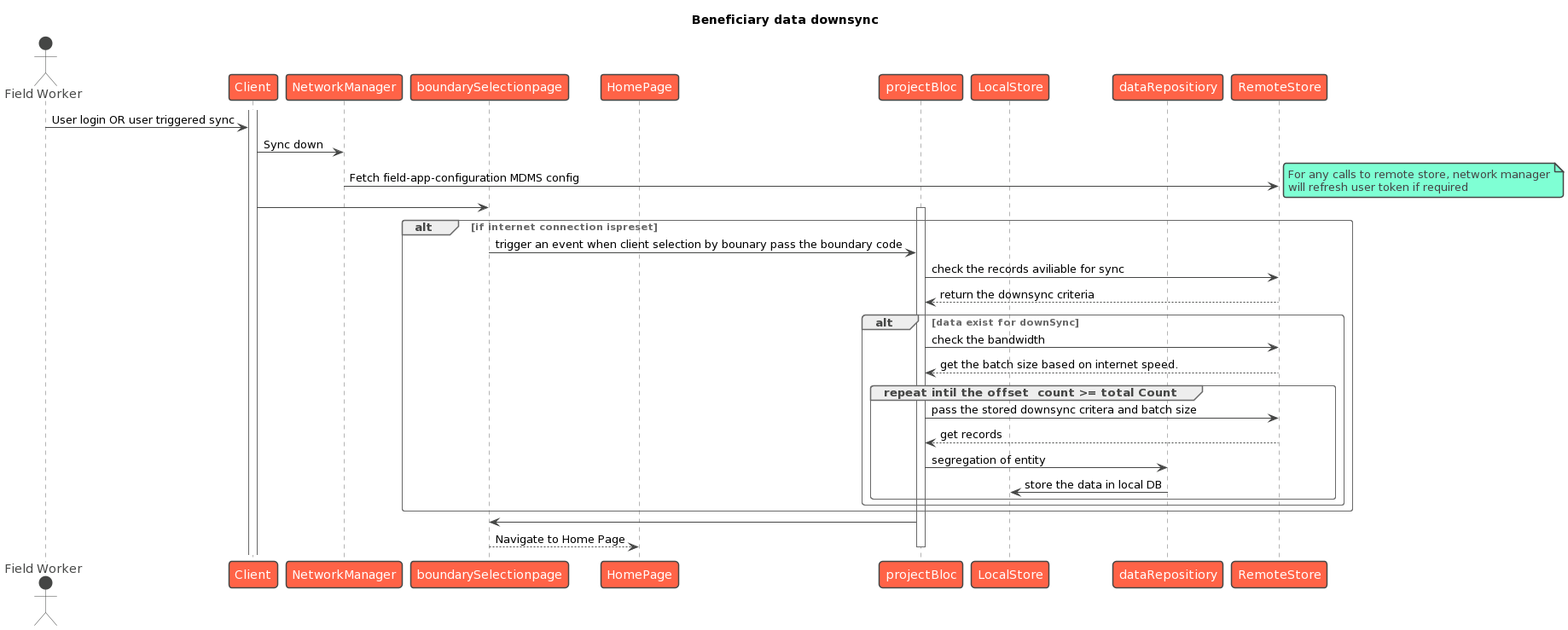 Based on the total count received, the down sync retrieves beneficiary records from the server in batches. The batch size is dynamically adjusted according to the device's internet speed to optimise the data transfer.