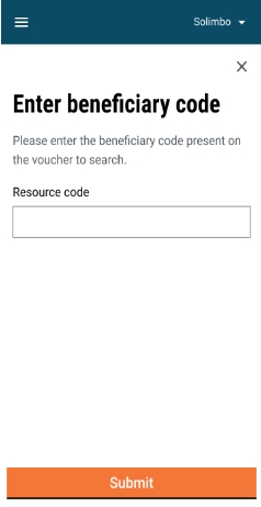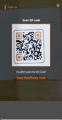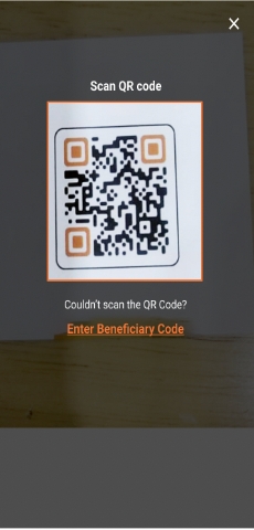 Clicking on the scan button on the search household screen opens a scanner that allows a user to scan the voucher code provided to the beneficiary during registration. The user can also enter the code manually by clicking on the “Enter Beneficiary Code” button, if the device is unable to scan.