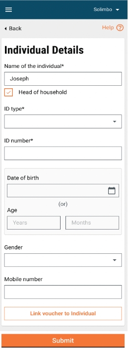 While creating a beneficiary, the user can link the beneficiary to the voucher card provided during registration by clicking on the “Link Voucher to Individual” button. If the scanner is not able to scan the code, the user can also enter the details manually. Screens for the scanner are same as that for search beneficiary.