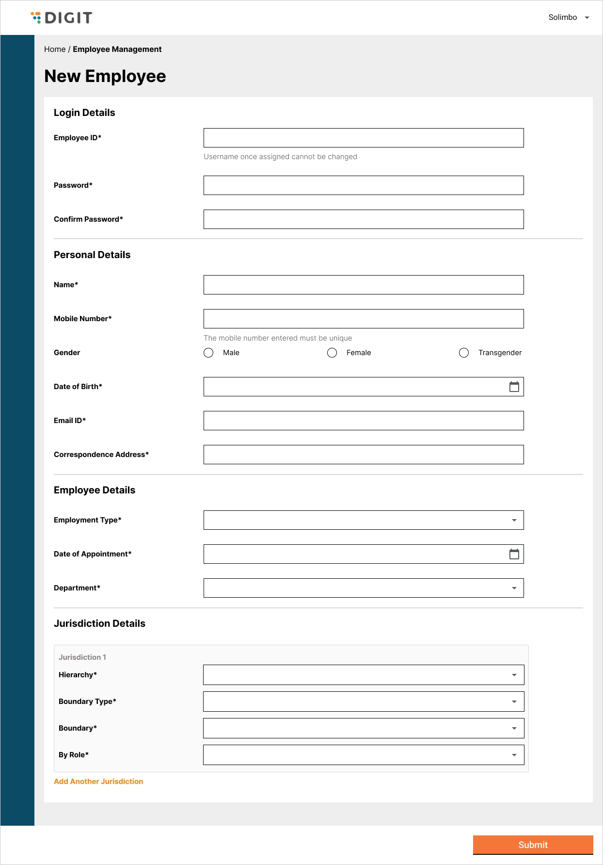 Users must be able to create new users by providing the following details. Refer to the section on specifications.