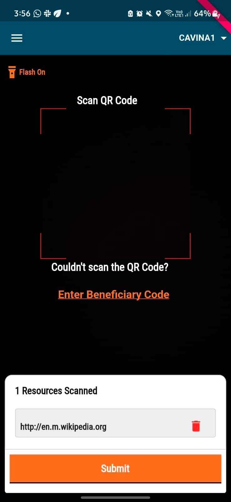 The QR code scanner will open up. Scan the voucher shown by the beneficiary and click on submit.