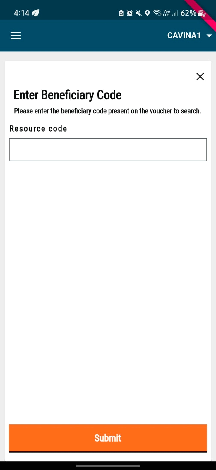 If the QR code voucher scanning shows an error, you can link the voucher manually by clicking on the "Enter Beneficiary Code". The following screen appears, which lets you add the voucher code manually. Next, click on 'Submit' to link the code successfully to the beneficiary.