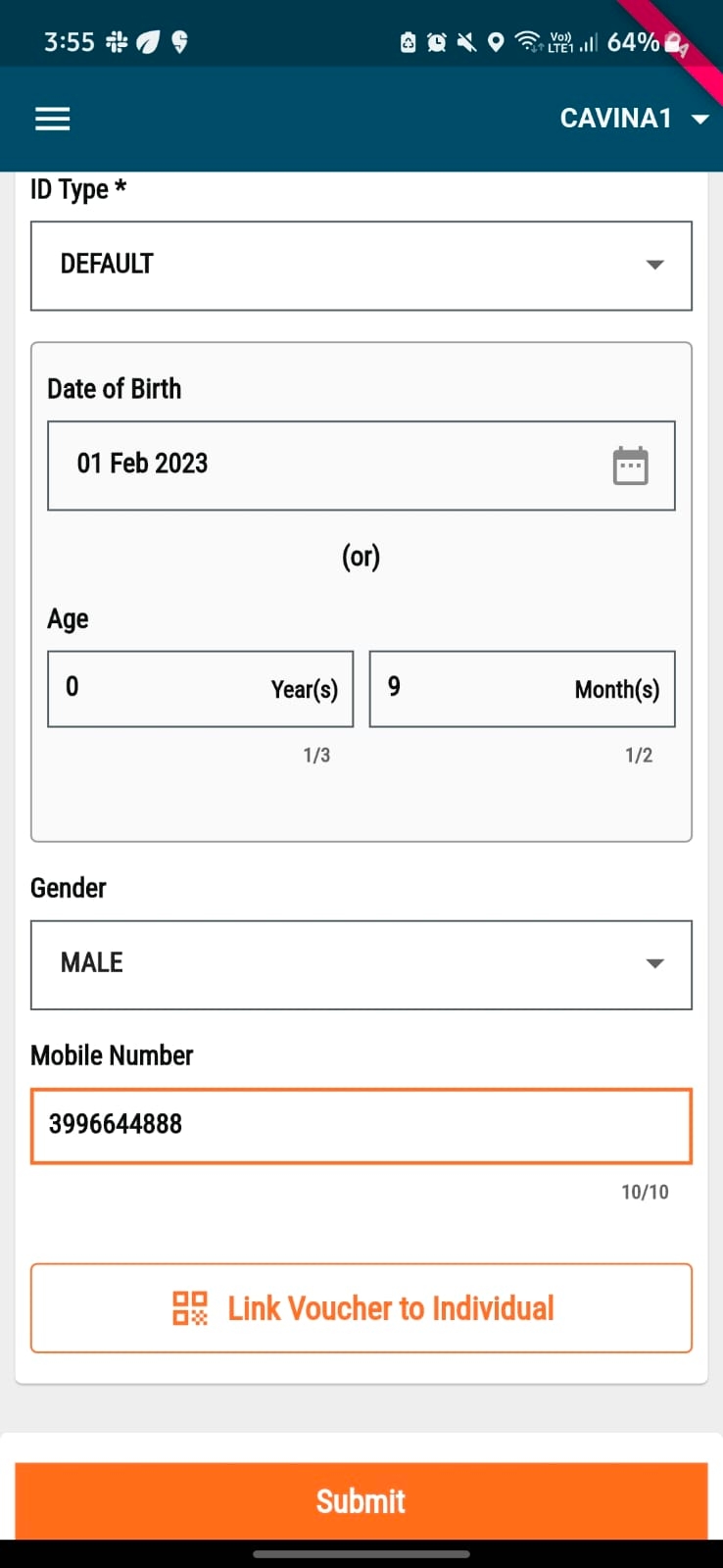 The voucher will appear on the Individual Details page. If click on the 'Edit' button next to the voucher code, you redo step 2 and link the correct QR code voucher to the beneficiary. Click on 'Submit' after adding the correct voucher code for the beneficiary to link the Voucher to the Beneficiary in the database.