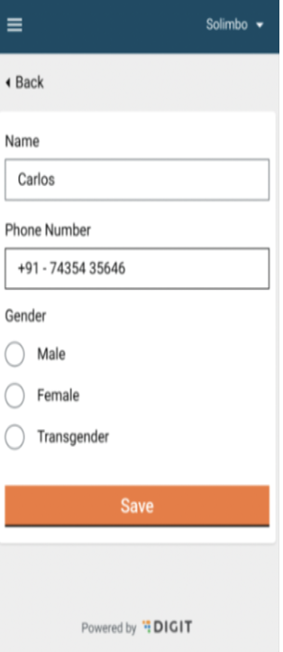 The user can edit his/her name, and phone number, and select the gender. After updating the details, the user needs to click on the save button which opens a prompt stating “saved successfully”.