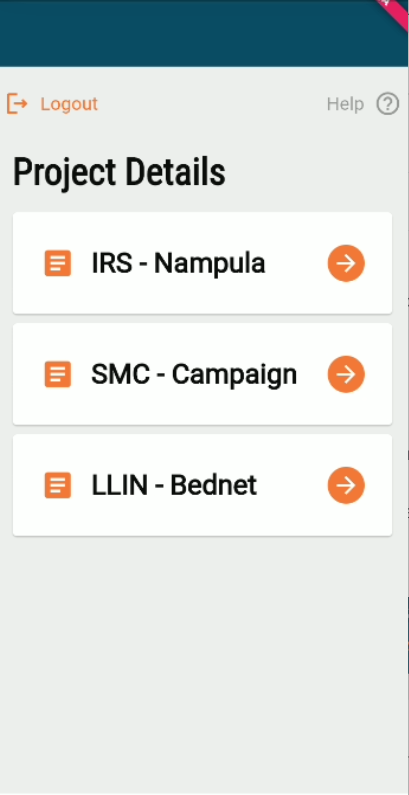 After a user logs into the HCM app, the project selection screen displays all the projects assigned to the user.