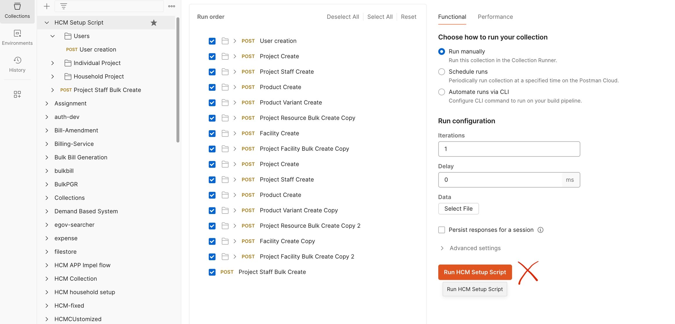 This collection includes all the scripts to create users, projects, staff, and product variants.