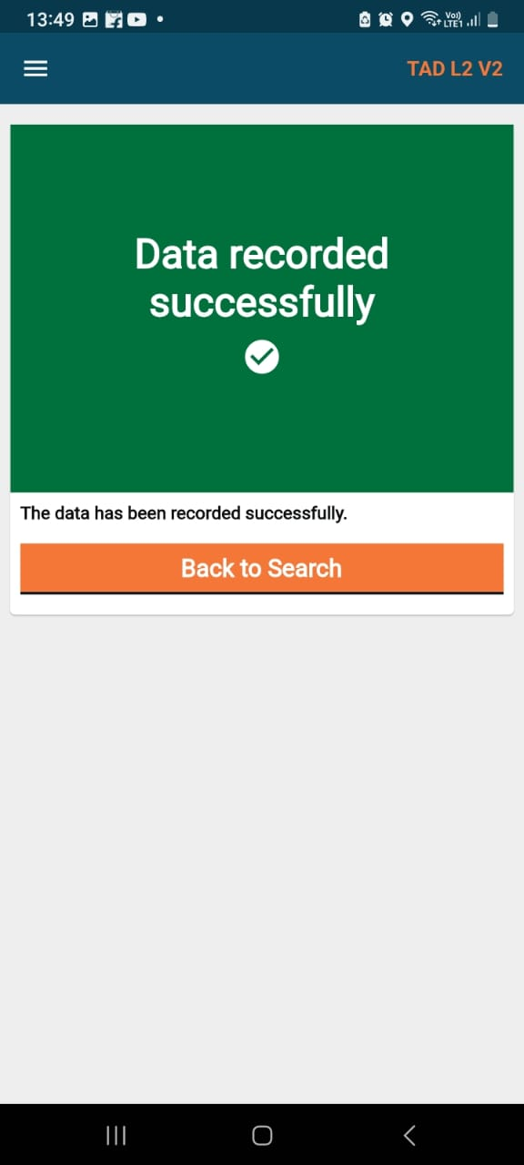 Before going into the field, the user needs to log into the application every day, which will initiate an automatic sync process. For manual sync, there is a "Sync Data" button on the home screen, which allows the user to sync data according to his/her convenience. At the bottom of the screen, there is a card that shows the message “Data unsynced” along with the number of records unsynced.