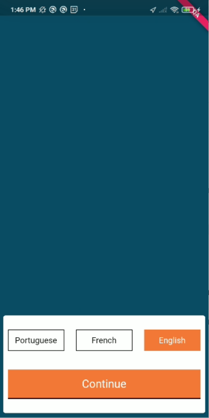When the user opens the application, it asks them to first select the language. The selected language is highlighted in orange color.