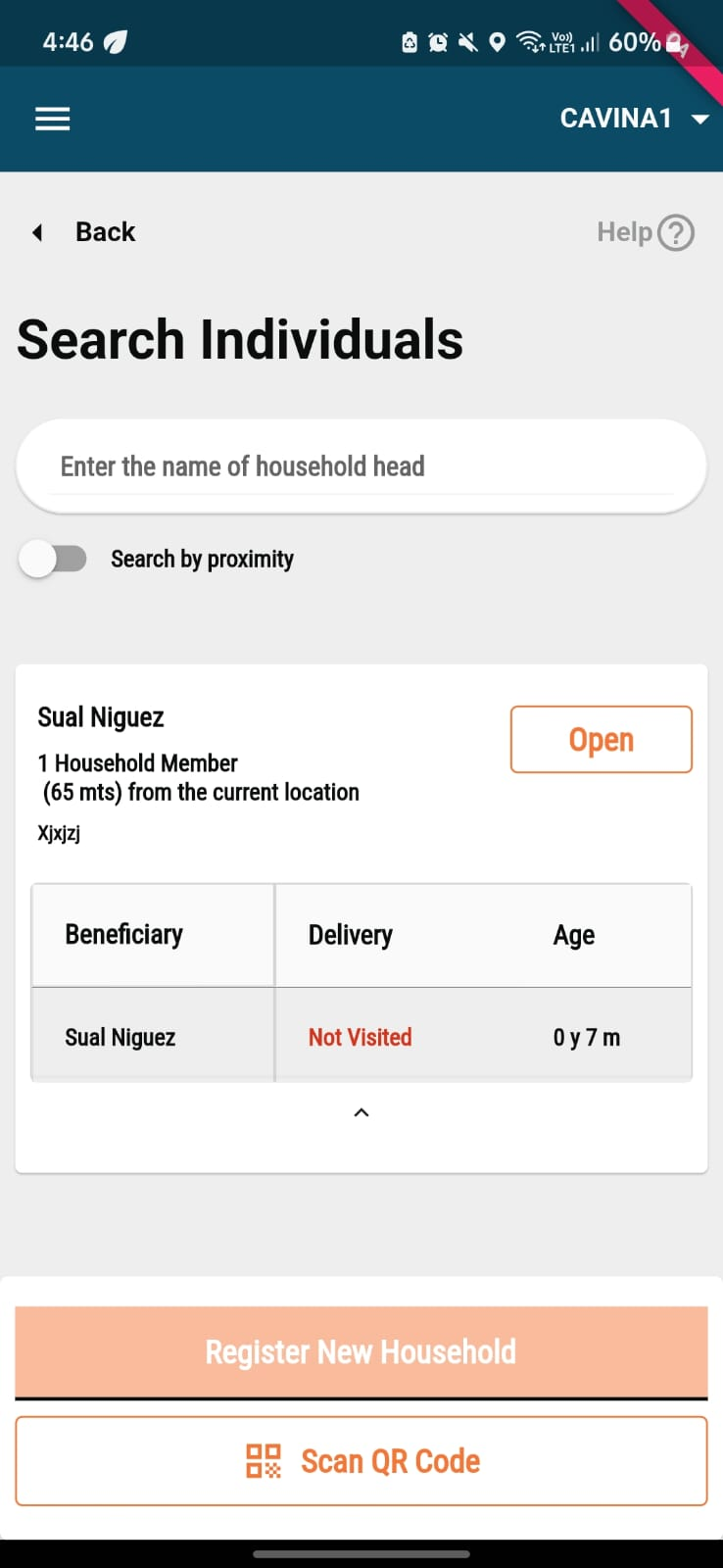 The user goes from house-to-house, and searches for beneficiaries by scanning the QR code voucher.