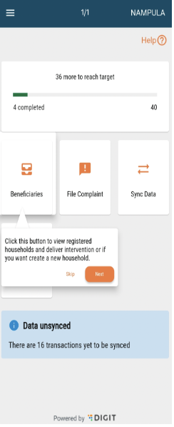 If the user clicks on the help button, it will give a walkthrough of the entire screen, including the role of each button placed with two buttons: