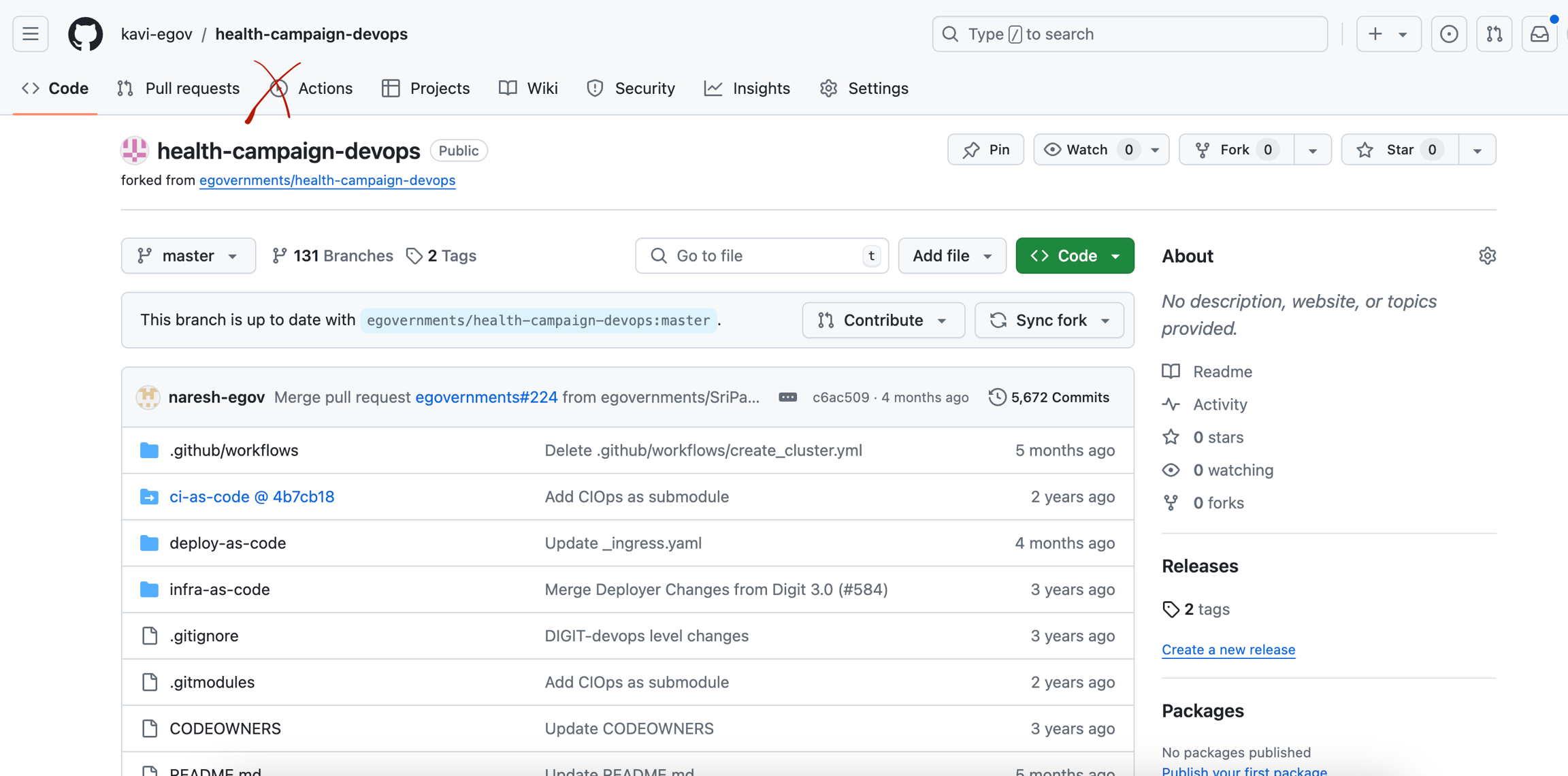 Navigate to the release-githubactions branch in the forked DevOps repository.