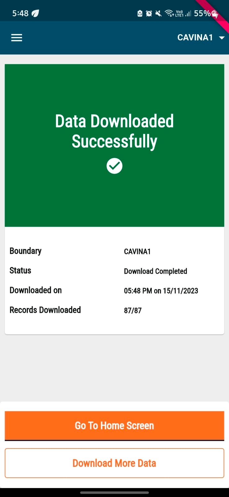 The system downloads the data for the selected project only.