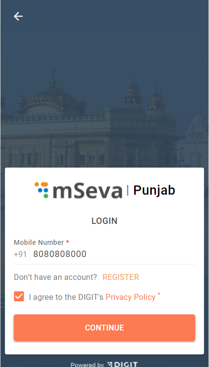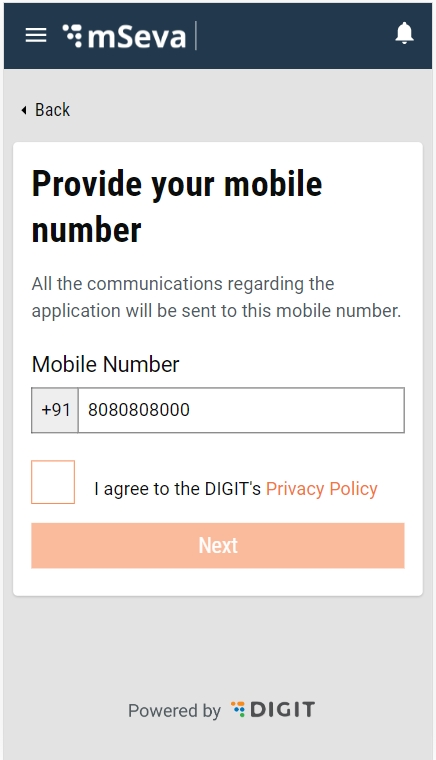Click on the I agree to the DIGIT's Privacy Policy check box to give consent.