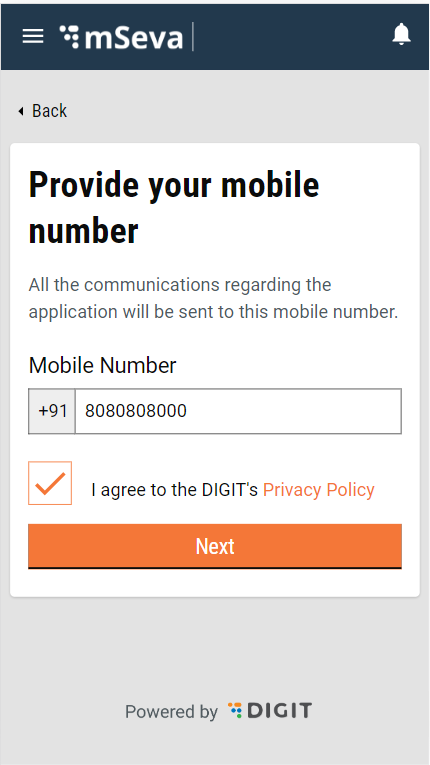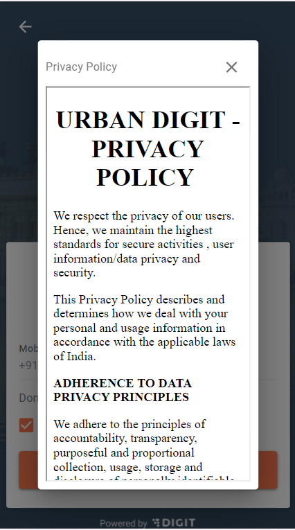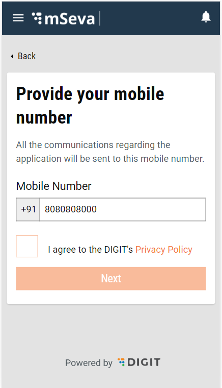 A citizen has to click on the checkbox to agree to DIGIT’s privacy policy.