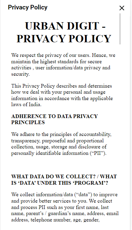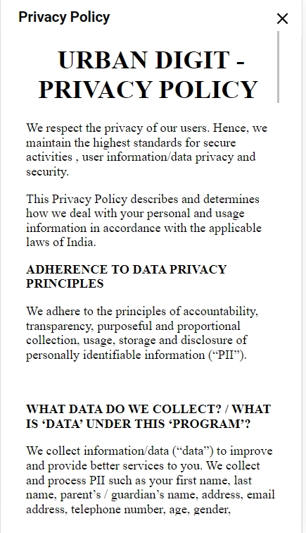 Click on the Privacy Policy hyperlink to view the privacy terms.