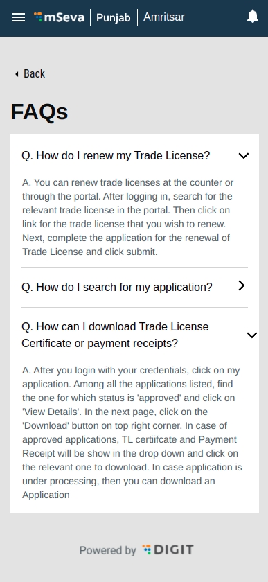 FAQs are added for each service from the MDMS configuration. More FAQs can be added in the MDMS and those will be shown in the UI.