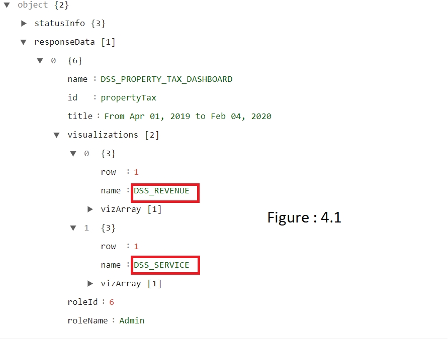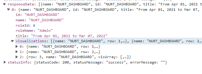 In the dashboardConfig response visualizations key contains all rows & charts details (refer to figure 1.3).